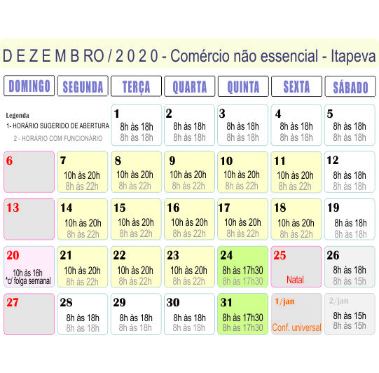 Horário do comércio de Itapeva (SP) no mês de dezembro/2020